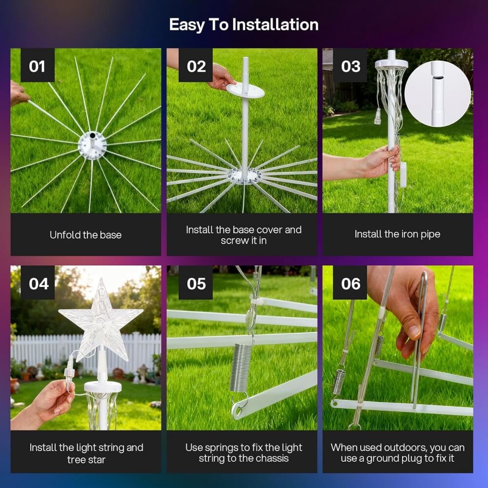 - Star Top Light: The star-shaped top light supports independent control or synchronization with the RGB Christmas tree’s colors, offering abundant DIY customization. Ensure proper alignment of the top light connector for full functionality and optimal control experience
