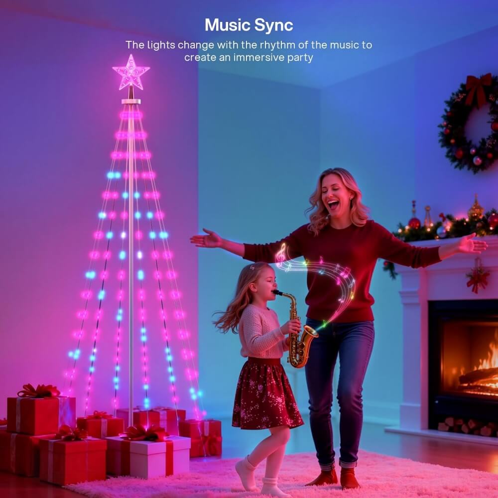 - Music Sync: The cone tree lights have a built-in high-sensitivity microphone that syncs light changes with music, creating an ideal ambiance for parties, weddings, and holidays
