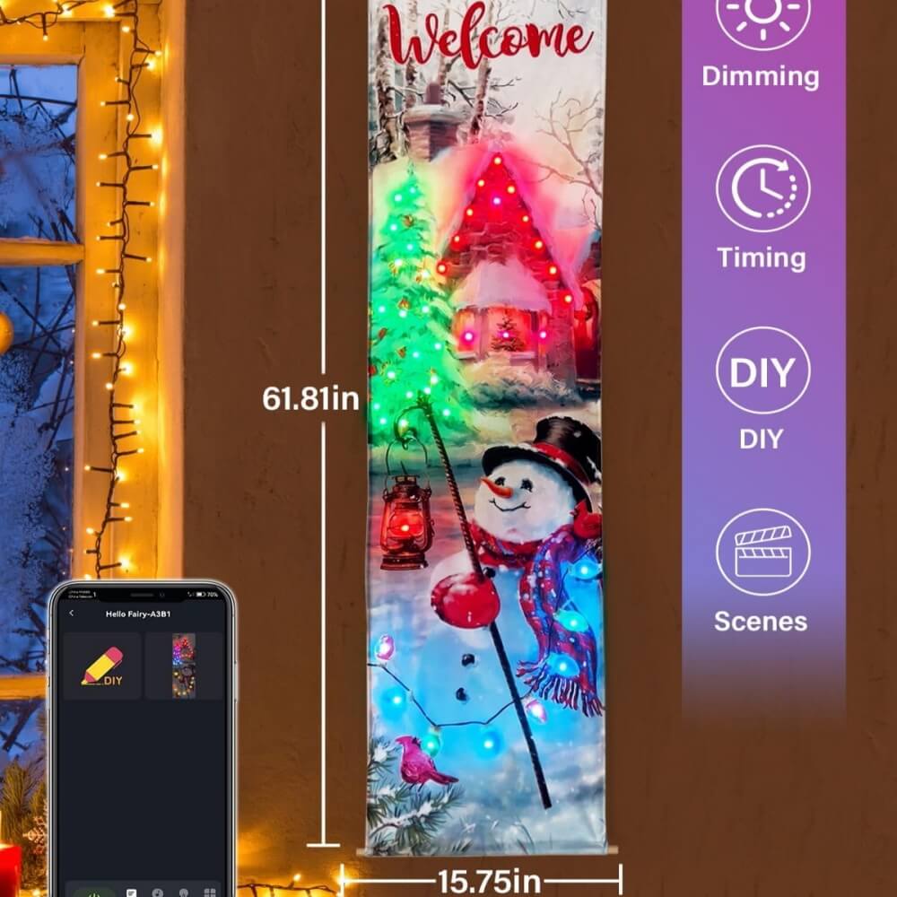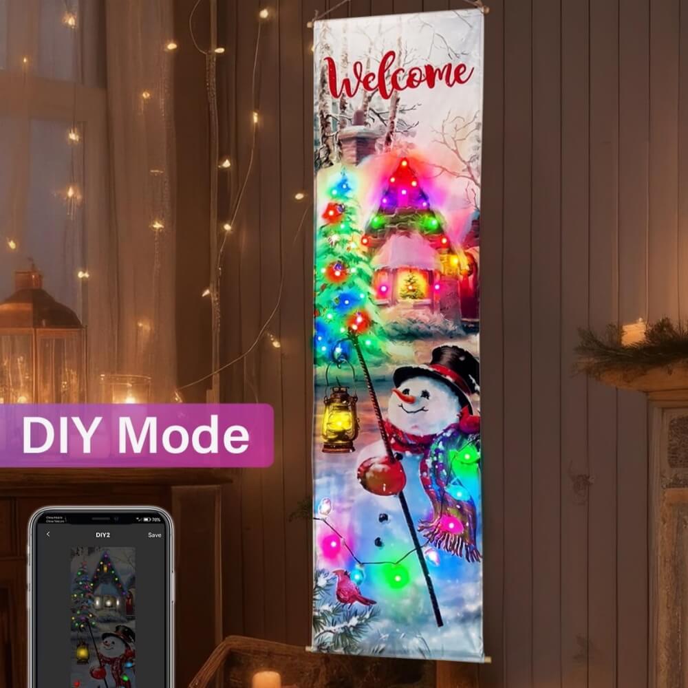 Lighted Christmas Tree and Snowman Wall Art 16″x62″, LED Christmas Wall Art with APP, DIY, Memory Function, Timer, Wall Art Print Design Snowman Picture Winter Snow Scene for Holiday Decor