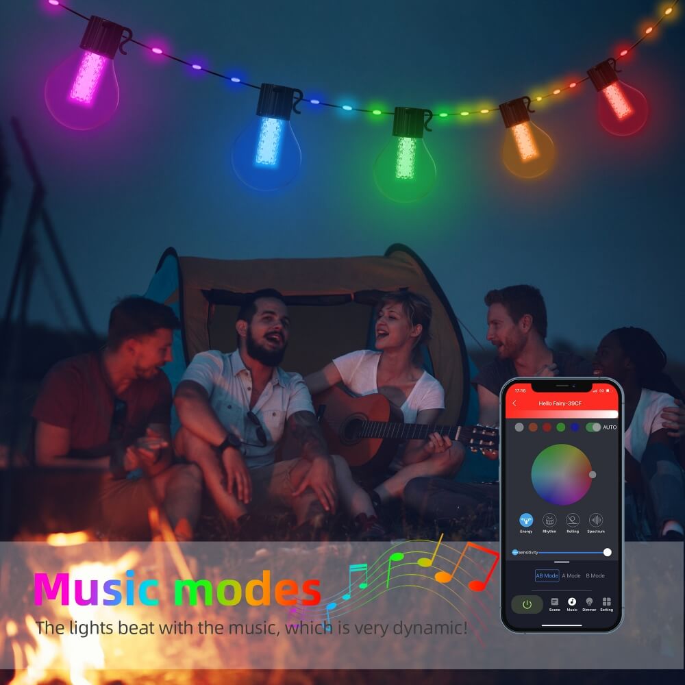● Multi Color Lights: This item is enabled with 16 million colors, 16 monochrome modes, 20 preset color-changing scenes and 4 vibrant music modes. With built-in microphone, the fairy light is sound reactive and can change color accordingly. Open your favorite playlist, the light syncs with music which creates a good mood for party gathering