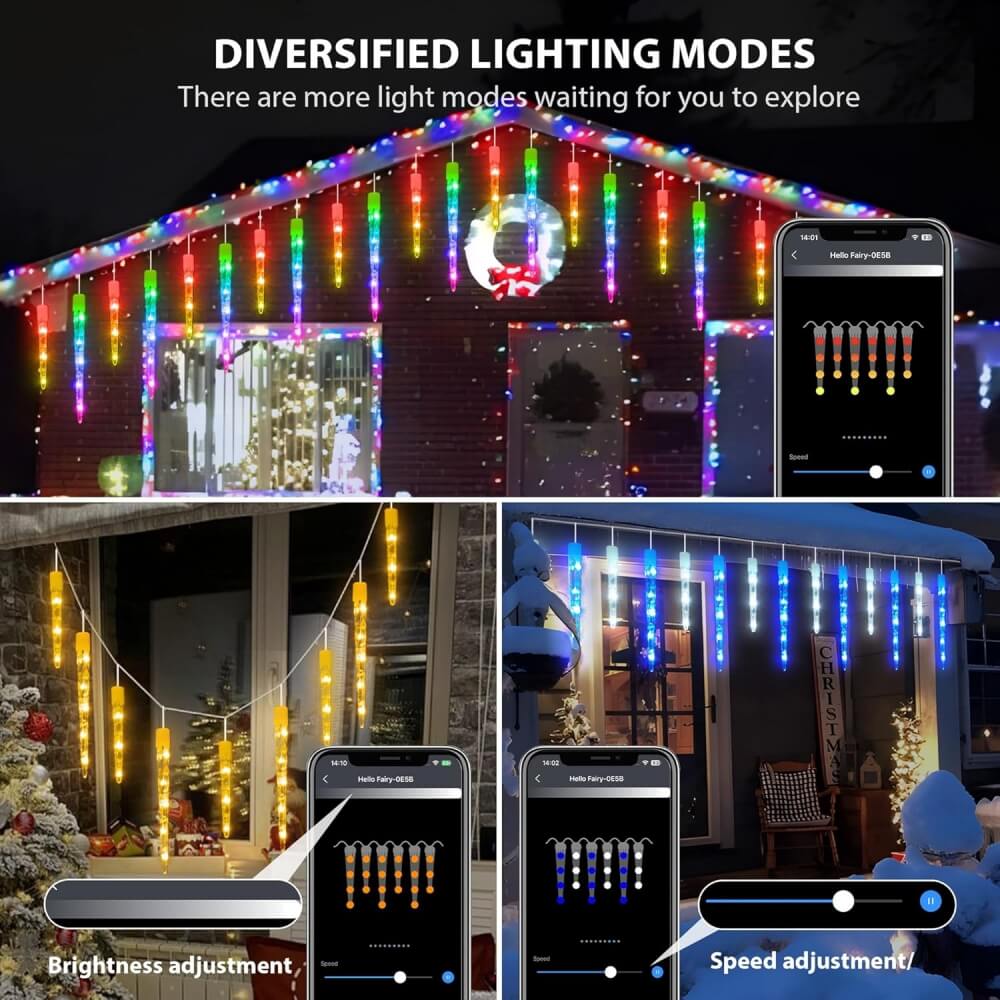 Smart Icicle Lights for Outside – LED Color Changing Icicle Christmas Lights Decoration – APP Controlled RGB Customize Display DIY Dynamic Lighting Effect