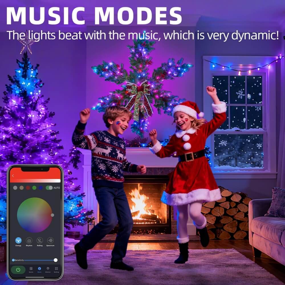 - 4️⃣ Music Rhythm Mode Lights dance with the beat! The built-in sound sensor allows the snowflake light to synchronize with surrounding music. In APP microphone mode, the rhythm response becomes even more accurate and dynamic, creating a dazzling show for parties or festive nights.