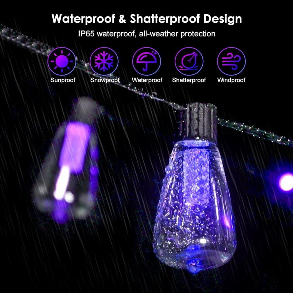 ● [Versatile] ST38 color changing string lights, selected from 16 million colors, perfect for any indoor or outdoor occasion, from Thanksgiving to Christmas, and everything in between. They’re ideal for backyard, garden, bistro, and party use.